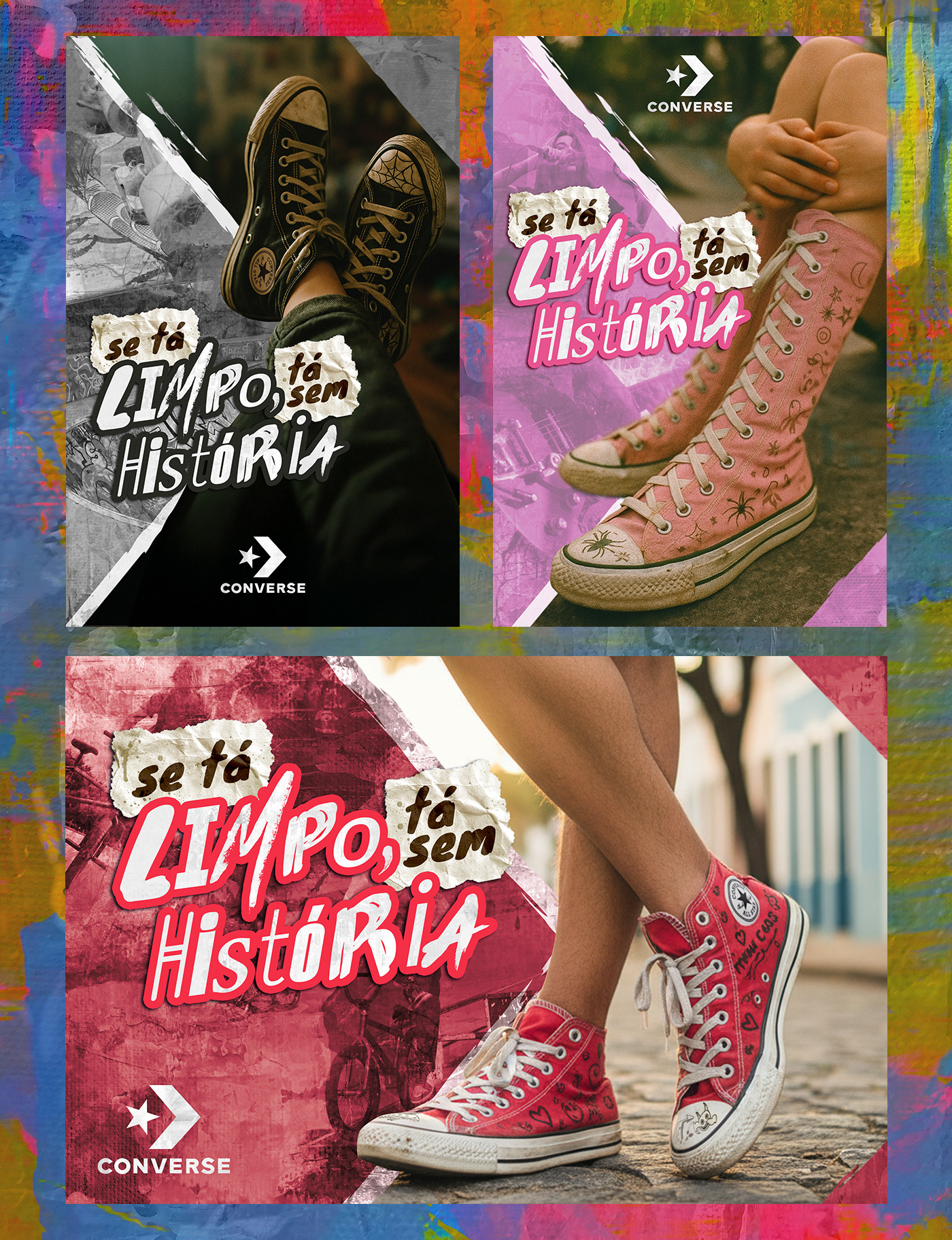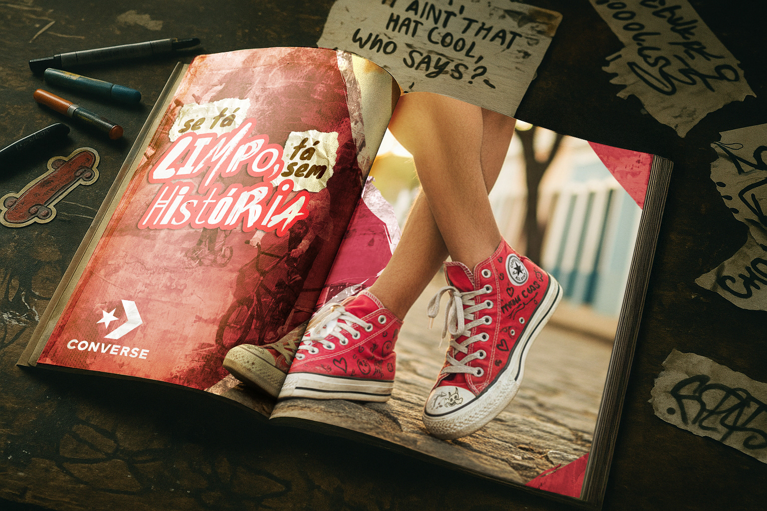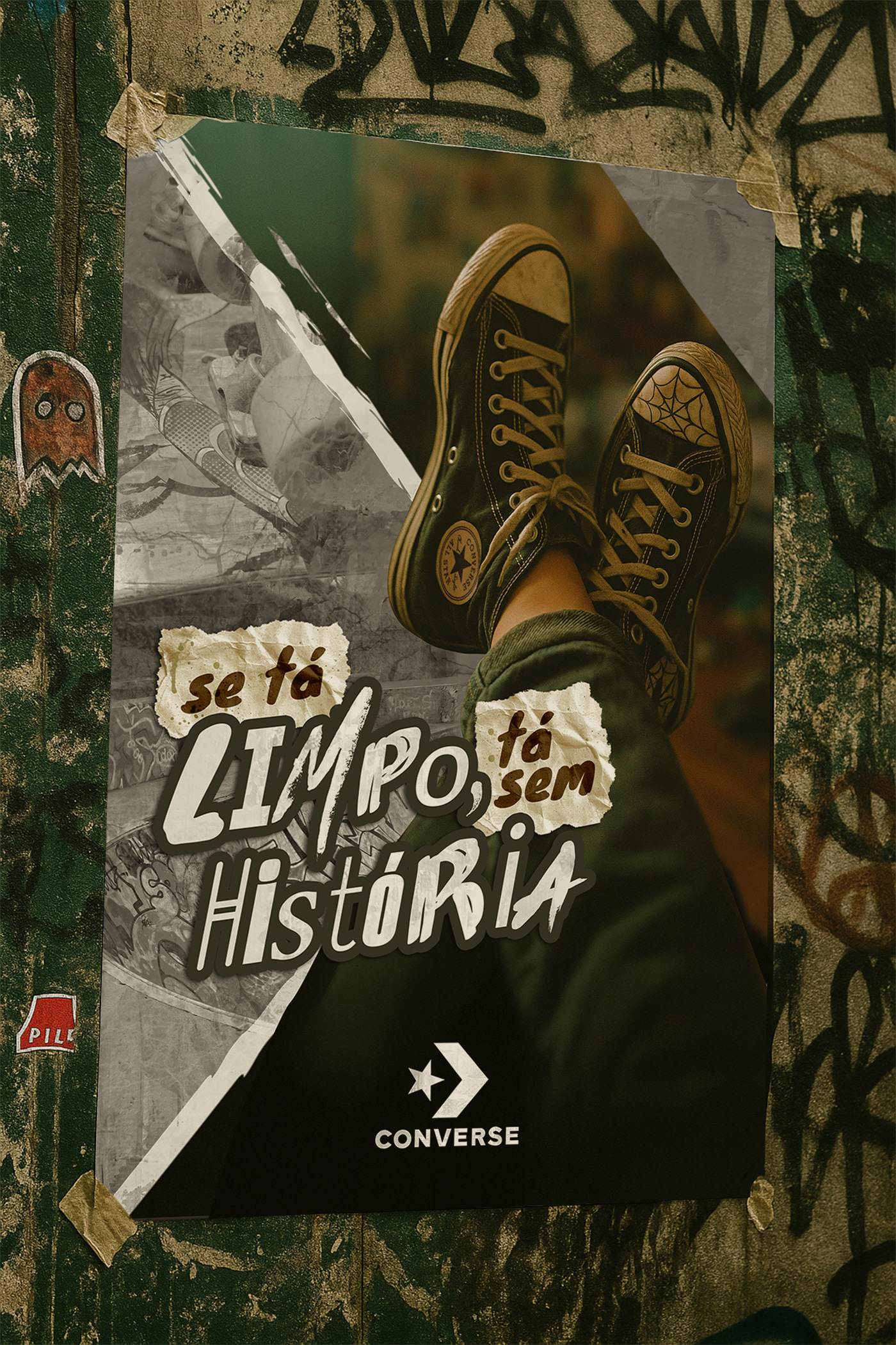 A spec campaign created for portfolio purposes, inspired by Converse’s authentic and rebellious spirit. The concept builds on the idea that every mark, stain, or doodle on your Converse tells part of your story — real attitude lives in what’s worn, not what’s new. Visually, the campaign draws from the brand’s grungy and urban heritage, using street-poster aesthetics, real textures, and imperfections to capture Converse’s free and unapologetic identity.
